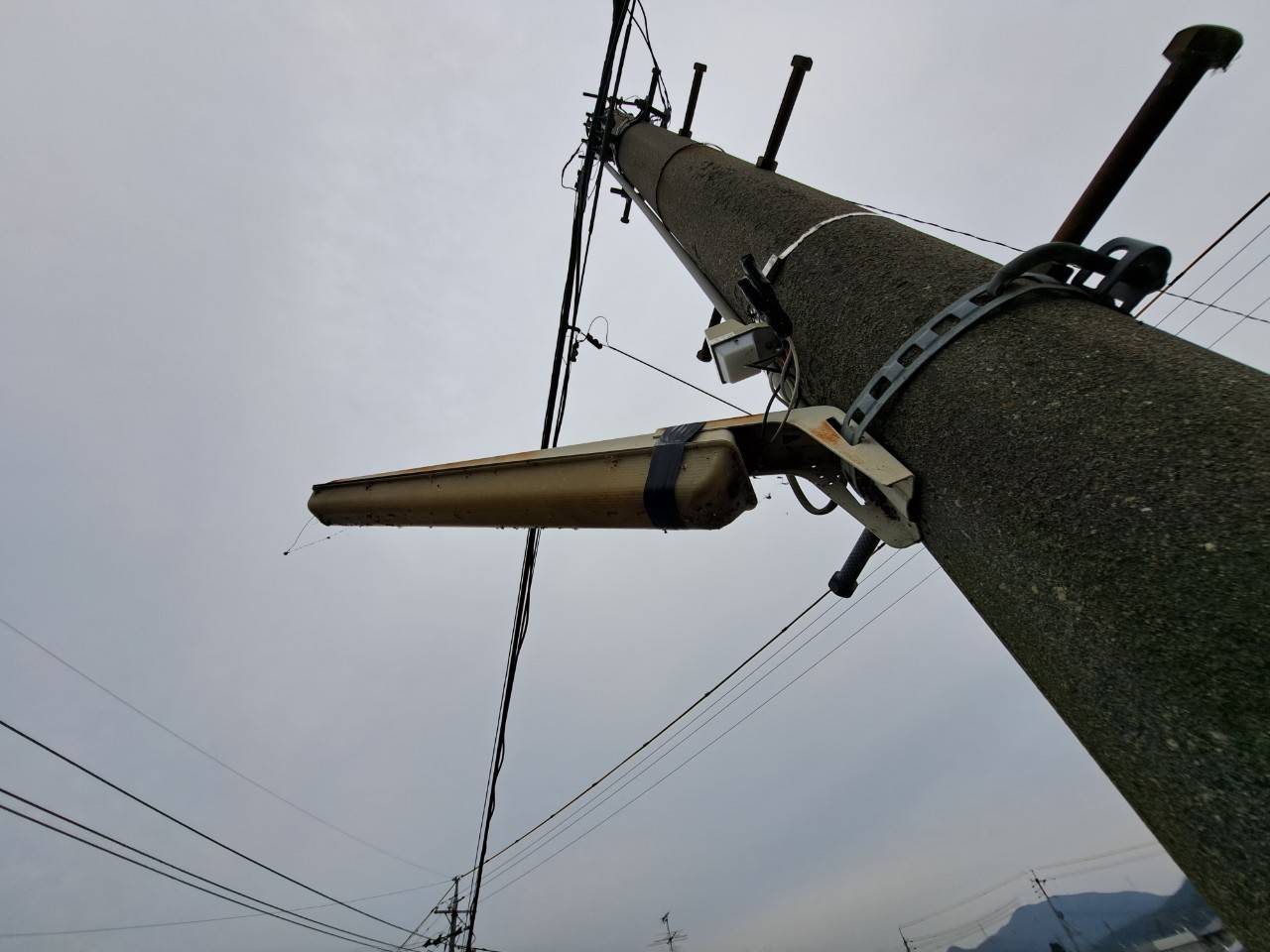 電柱についている防犯灯が蛍光灯だったので、こちらをLEDに変更しました。